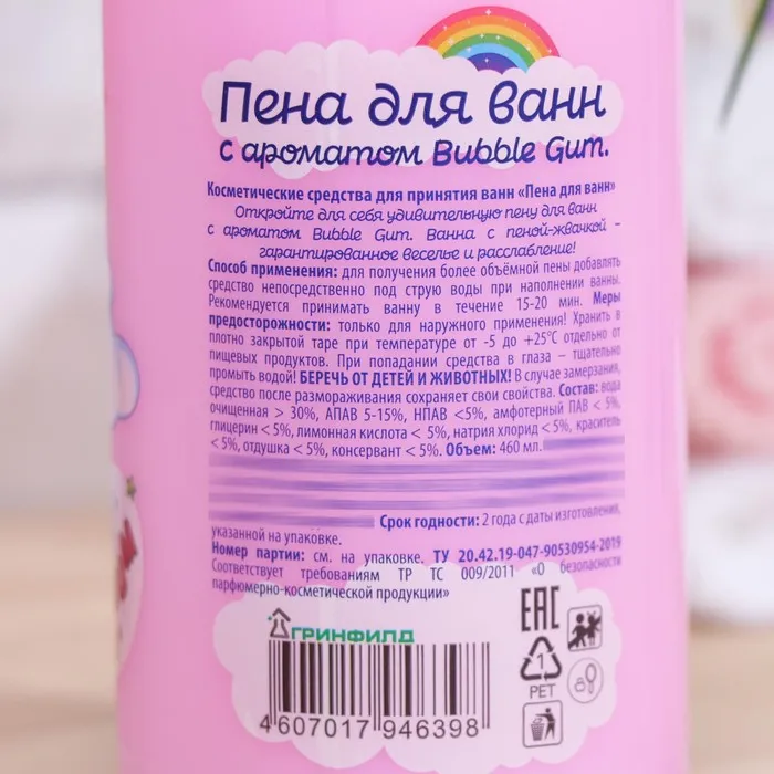 Пена для ванн "Unicorn Bubble Gum" принесет вам ностальгический аромат и визуальное восприятие ванны с пеной-жвачкой. Превратите свою ванну в царство фантазий, где каждый пузырек пены прячет в себе тайное волшебство.