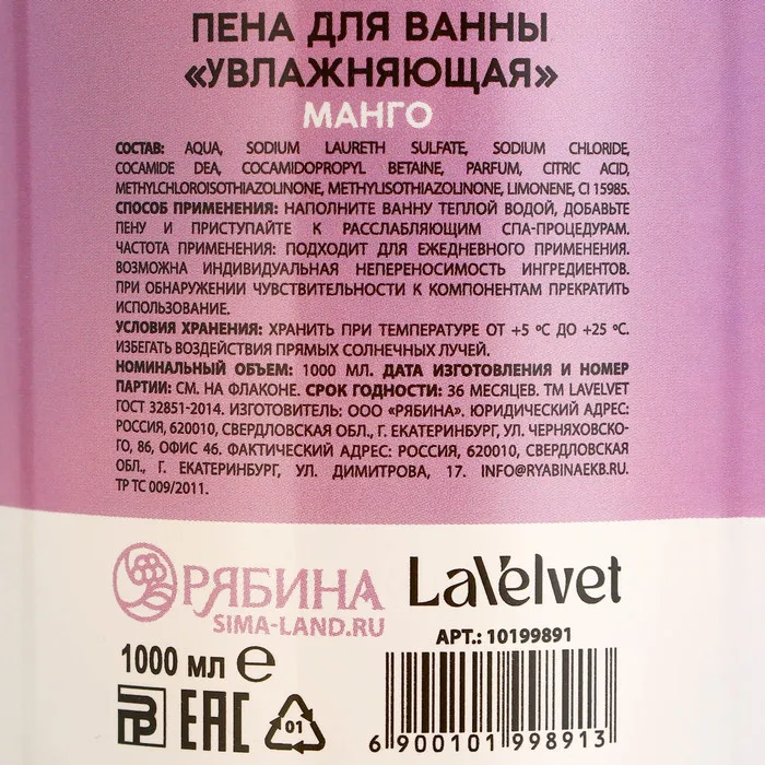 Пена для ванны, 1000 мл, аромат манго, BEAUTY FOX — Характеристики