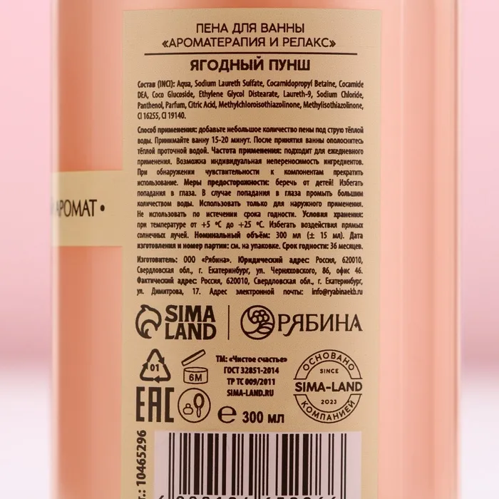 Пена для ванны, 300 мл, аромат ягодный пунш, Чистое счастье — Характеристики