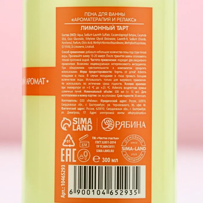 Пена для ванны, 300 мл, аромат лимонного тарта, Чистое счастье — Характеристики