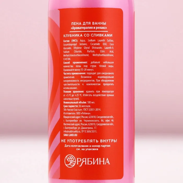 Пена для ванны Bath foam, 100 мл, аромат клубники со сливками, Чистое счастье — Характеристики