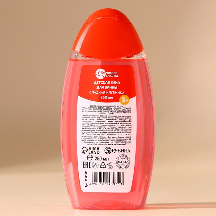Пена для ванны детская, 250 мл, аромат сладкой клубники, Чистое счастье — Характеристики