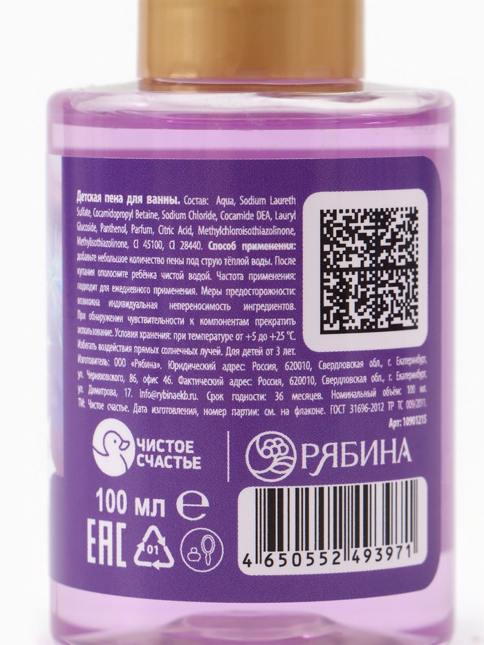 Пена для ванны детская, аромат фруктовый лёд, 100 мл, Холодное сердце — Характеристики