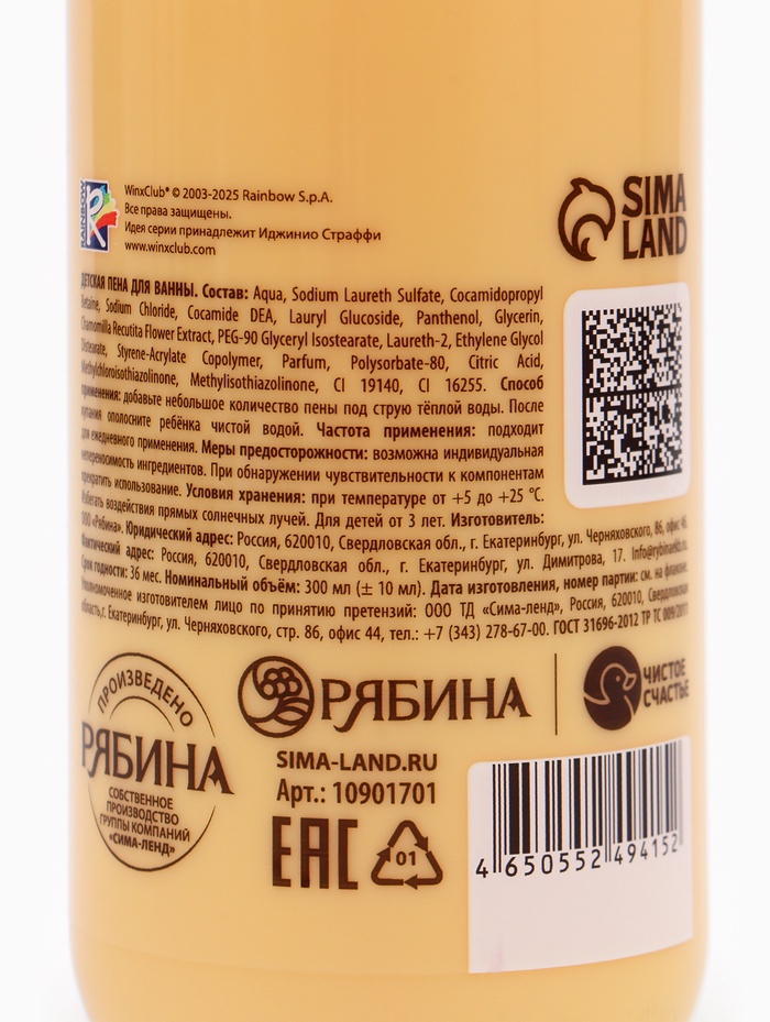 Детская пена для ванны «Ванильное мороженое» из коллекции «Винкс» — волшебное превращение купания в сладкое приключение! Объём 300 мл, гипоаллергенная формула без SLS, парабенов и агрессивных отдушек подходит даже для самой нежной кожи. Создаёт обильную, нежную пену с тёплым, уютным ароматом ванильного мороженого — сладким, но не приторным. На флаконе — сияющая фея Винкс, дарящая атмосферу доброй сказки и волшебства. Подходит для ежедневного использования с 3 лет. Пусть каждый вечер будет таким же тёплым, сладким и волшебным, как заклинание дружбы!