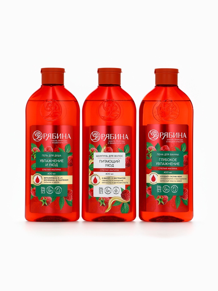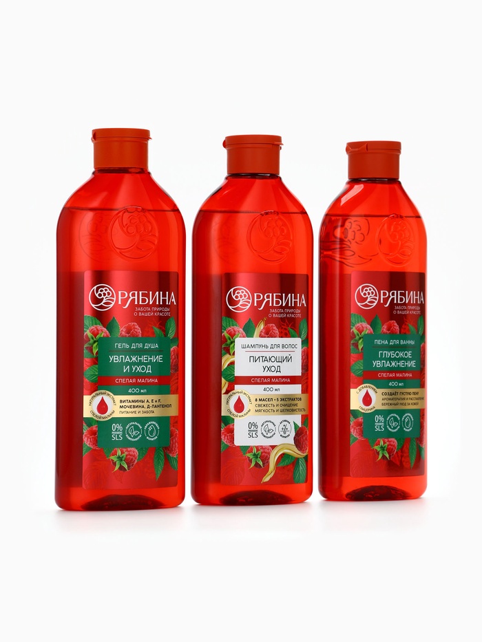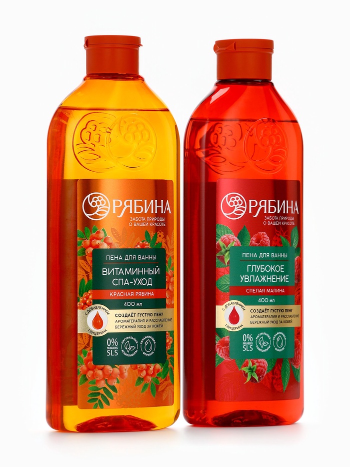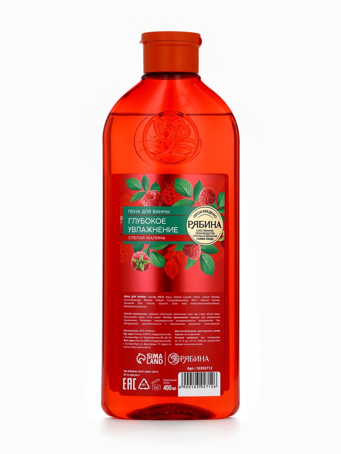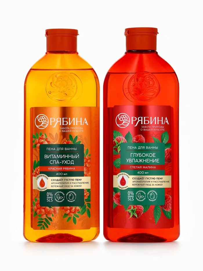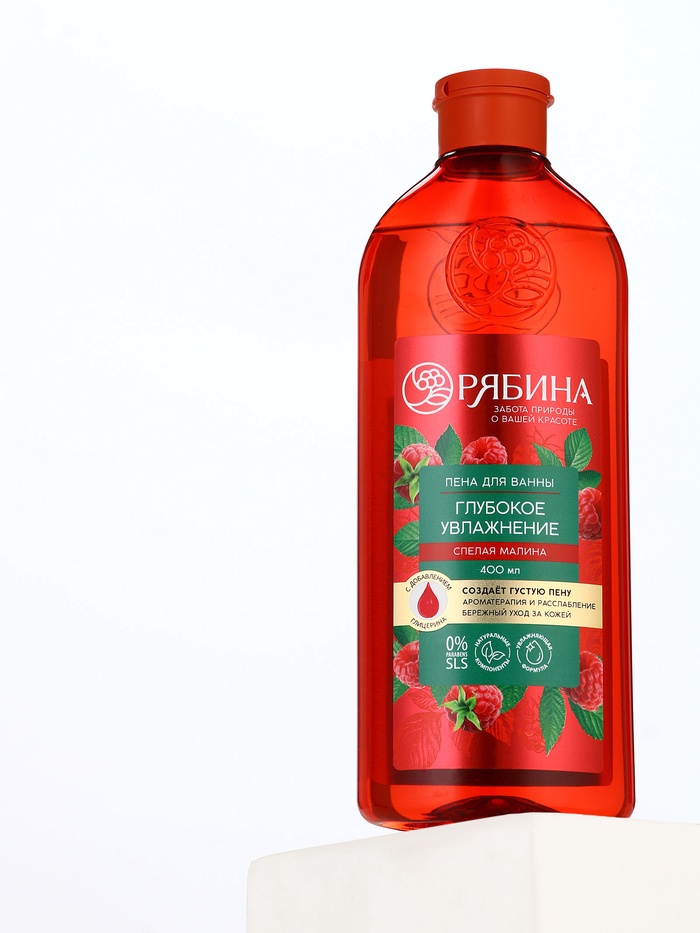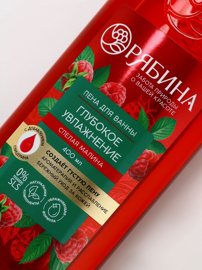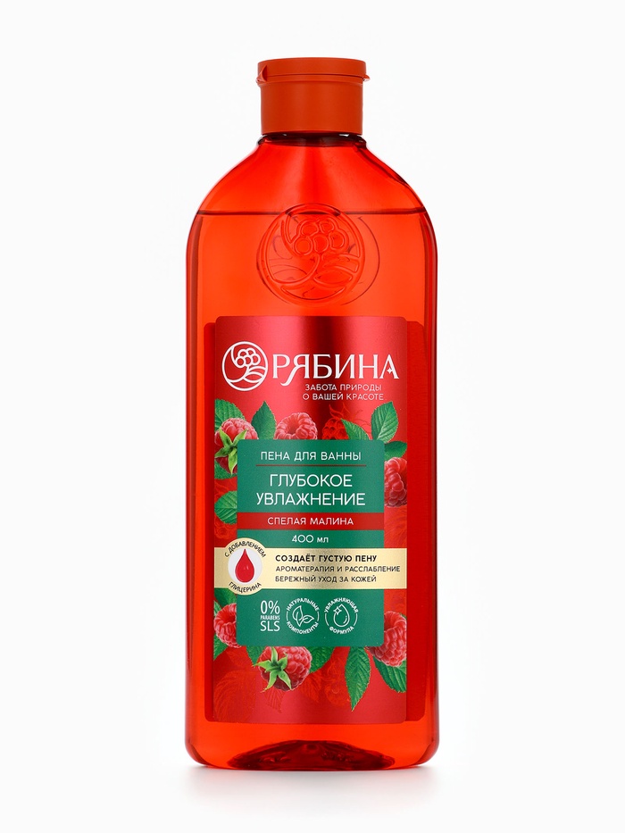 Пена для ванны, глубокое увлажнение, аромат малины, 400 мл, Рябина — Характеристики