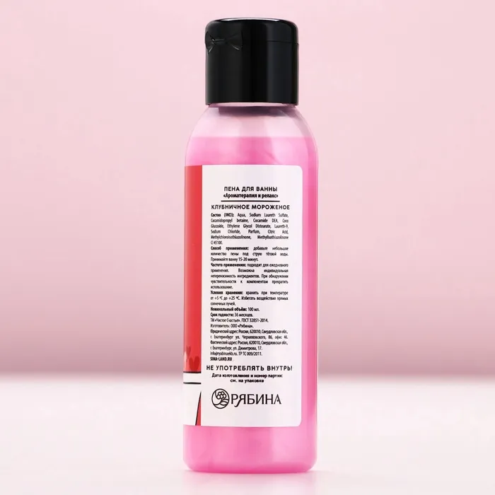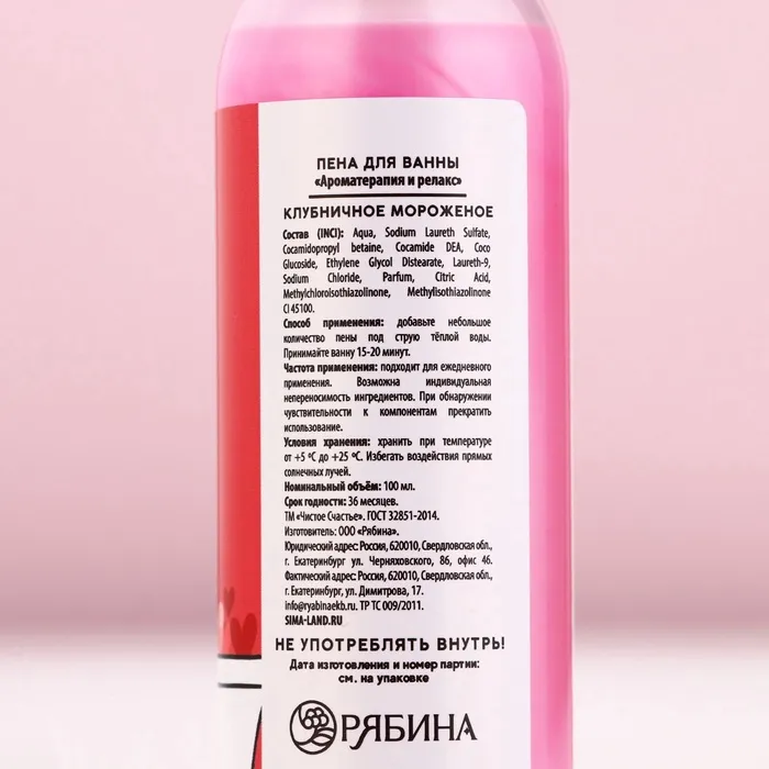 Пена для ванны «Купайся в любви», 100 мл, аромат клубничного мороженого, Чистое счастье — Характеристики