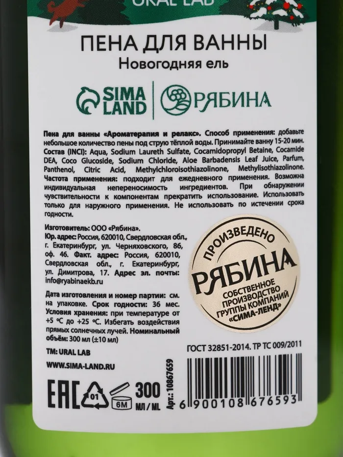Пена для ванны One, two, Christmas tree, 300 мл, аромат: новогодняя ель, Ural Lab Winter Melody — Характеристики