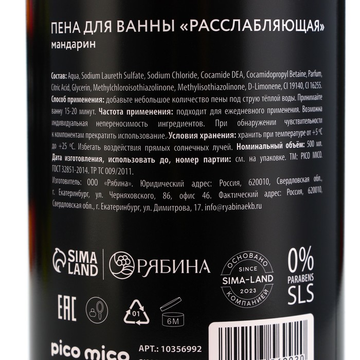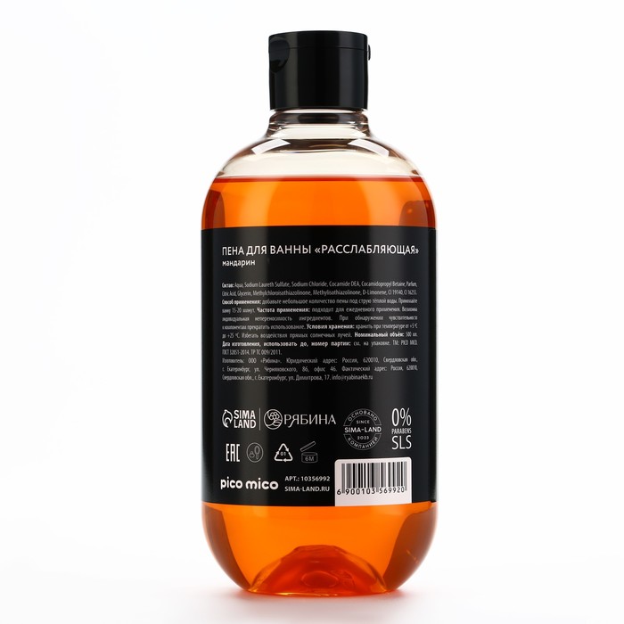 Пена для ванны PICO MICO «Сладкие грёзы», 500 мл, аромат мандарина — Характеристики