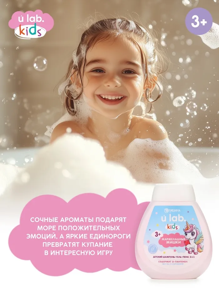 Детский шампунь-гель-пена 3в1 «Единороги», 250 мл, аромат клубничный смузи, 3+