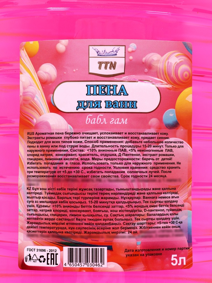 Пена для ванны TITAN «Бабл Гам» — это яркое и весёлое средство, которое превращает обычное купание в настоящее удовольствие. Нежная и густая пена мягко очищает кожу, делая её мягкой, увлажнённой и приятно ароматной. Аромат жевательной резинки создаёт праздничное настроение и оставляет после купания лёгкий, сладкий аромат.