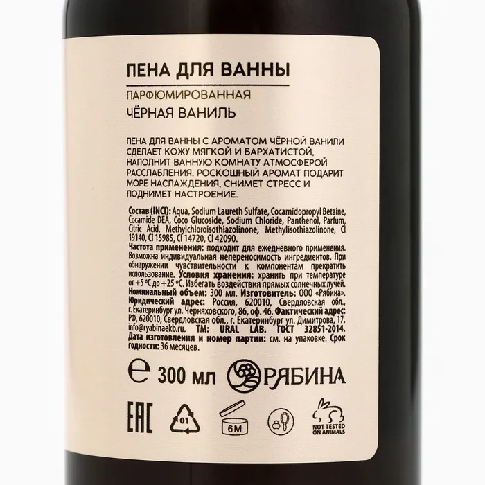 Пена для ванны URAL LAB, 300 мл, аромат чёрной ванили — Характеристики