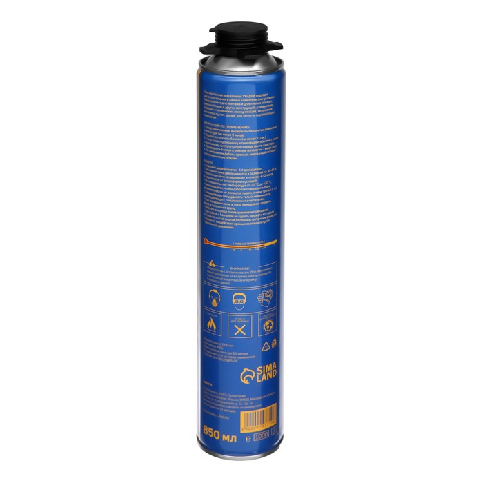 Пена монтажная ТУНДРА ПРОФИ, пистолетная, всесезонная, выход 65 л, 850 мл — Характеристики