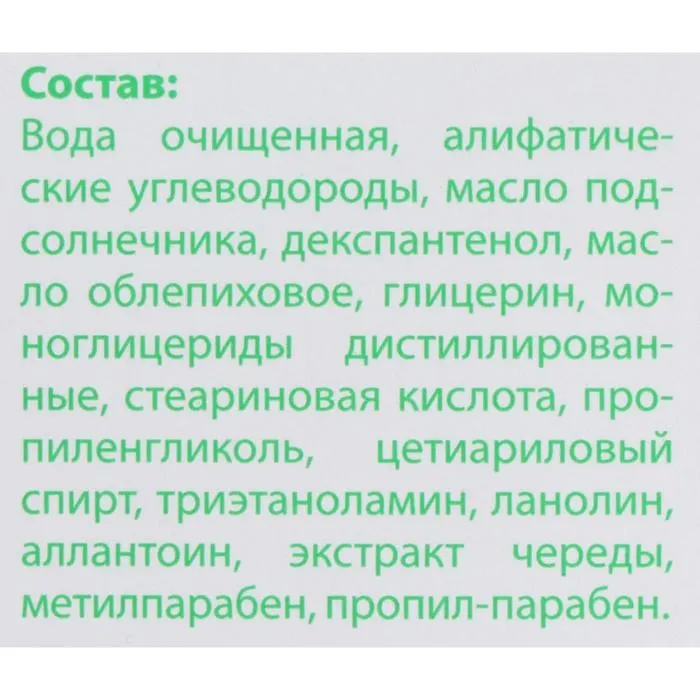 Оказывает быструю помощь при солнечных и термических ожогах, улучшает естественную регенерацию тканей. Новая формула с маслом облепихи и экстрактом череды бережно ухаживает за чувствительной кожей ребенка, успокаивает и увлажняет кожу, снимает покраснение.