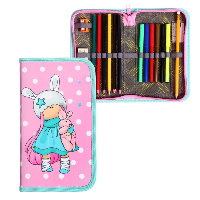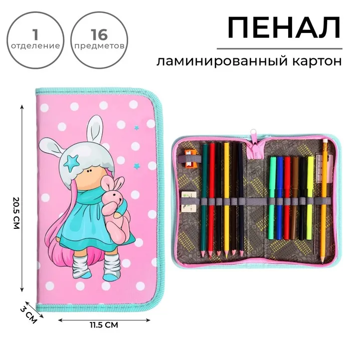 Пенал 1 секция, 115 х 205 мм, с наполнением 16 предметов, Calligrata "Девочка" ламинированный картон, 30П26/set — Характеристики