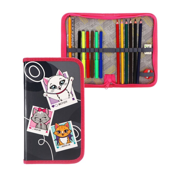 Пенал 1 секция, 115 х 205 мм, с наполнением 16 предметов, Calligrata "Котята" ламинированный картон, 30П26/set — Характеристики