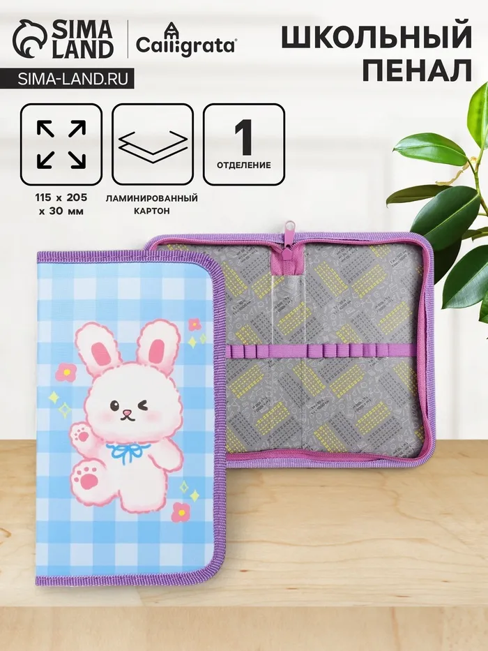 Пенал 1 секция 115×205×30 мм, «Зайка», ламинированный картон — Характеристики