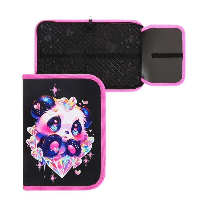 Пенал 1 секция 130 х 190 х 30 мм, с откидной планкой, ПКТ 07-22-19 "Панда в сердечках" ламинированный картон — Характеристики