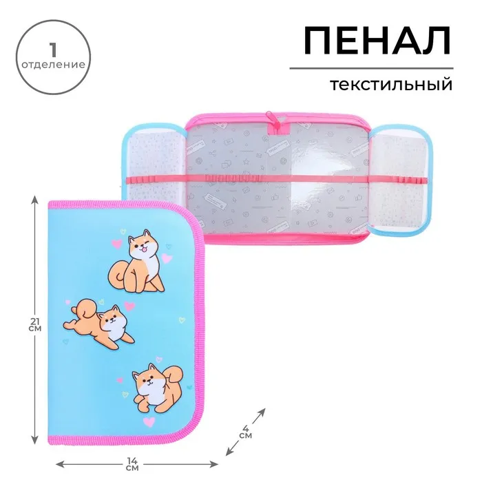 Пенал 1 секция, 130 х 210 х 40 мм, 2 откидные планки, тканевый, Calligrata TOP, Content "Сиба-ину" — Характеристики