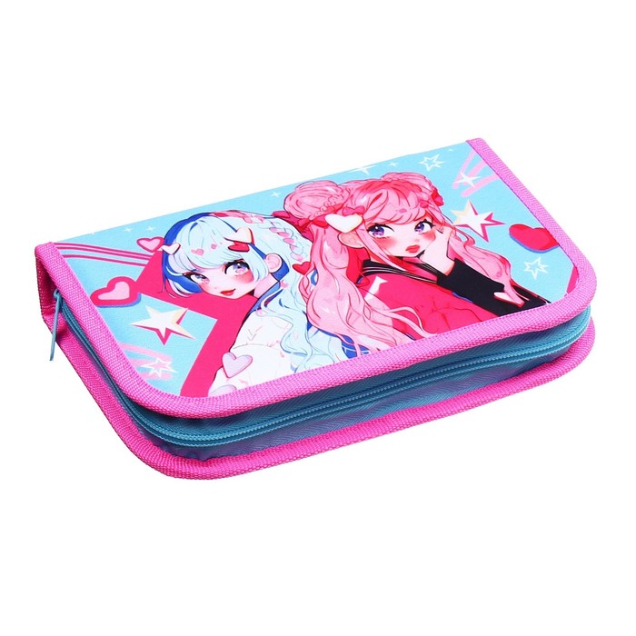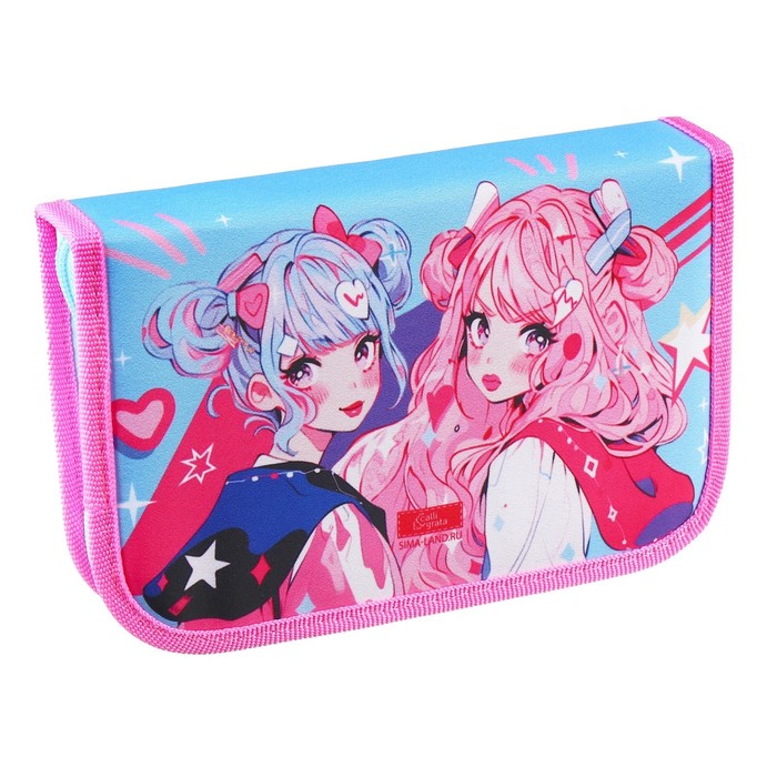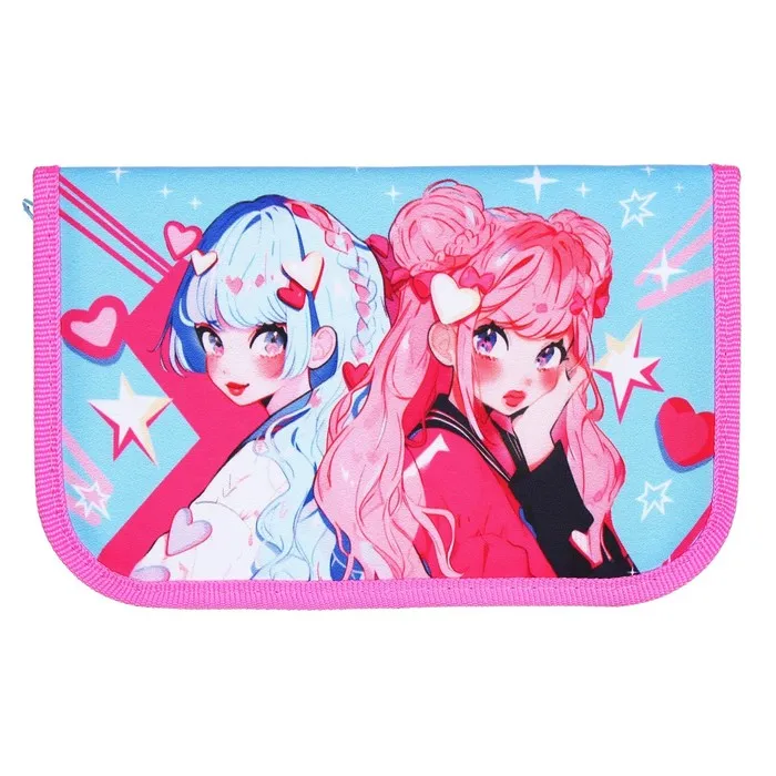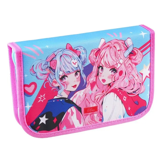 Пенал 1 секция, 130×210×40 мм, 2 откидные планки, тканевый, «Аниме подружки» — Характеристики
