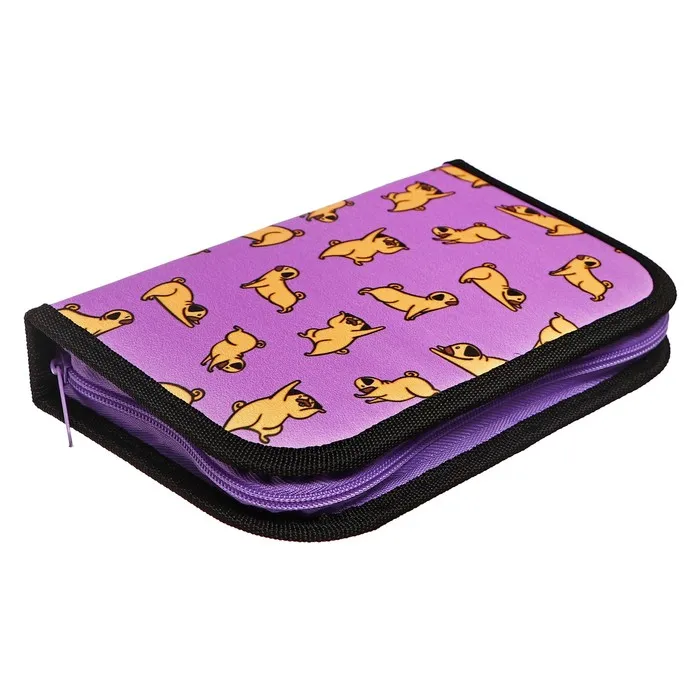 Пенал 1 секция, 130×210×40 мм, 2 откидные планки, тканевый, «Бульдожки» — Характеристики