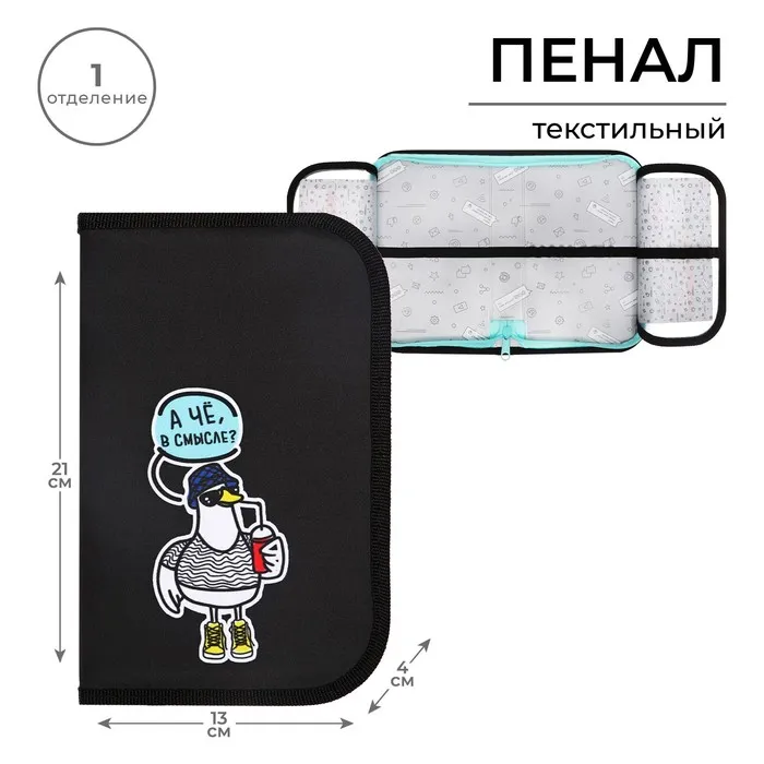 Пенал 1 секция, 130×210×40 мм, 2 откидные планки, тканевый, «Гусь» — Характеристики