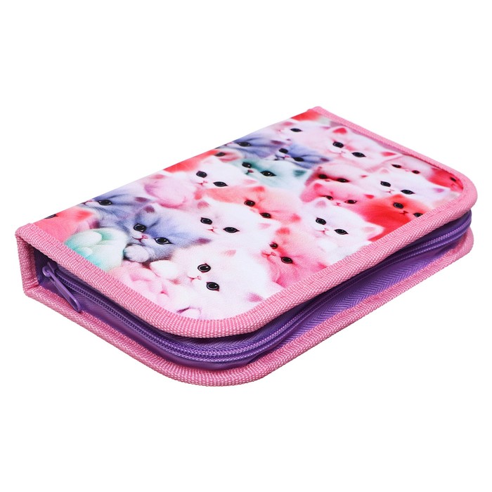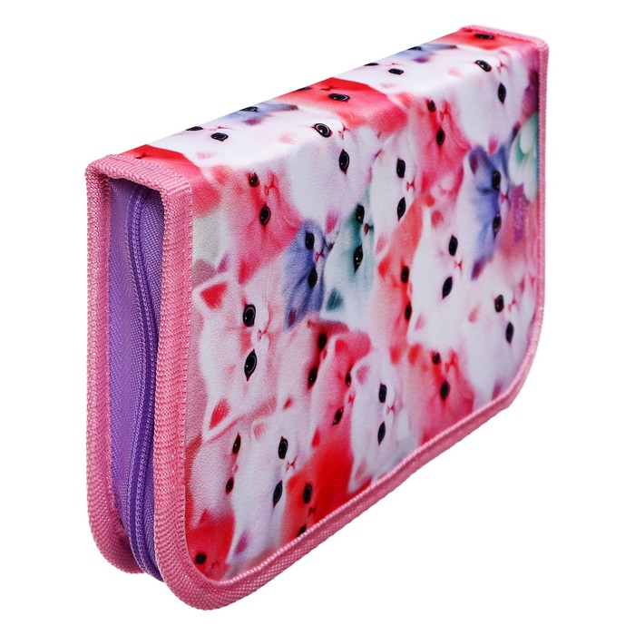 Пенал 1 секция, 130×210×40 мм, 2 откидные планки, тканевый, «Котики пушистики» — Характеристики