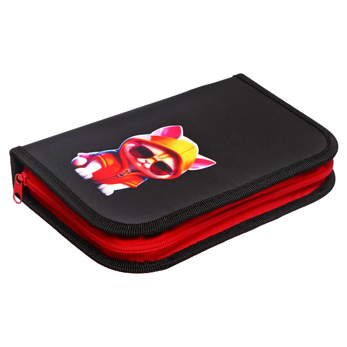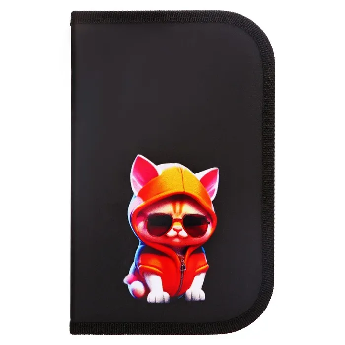 Пенал 1 секция, 130×210×40 мм, 2 откидные планки, тканевый, «Крутой кот» — Характеристики
