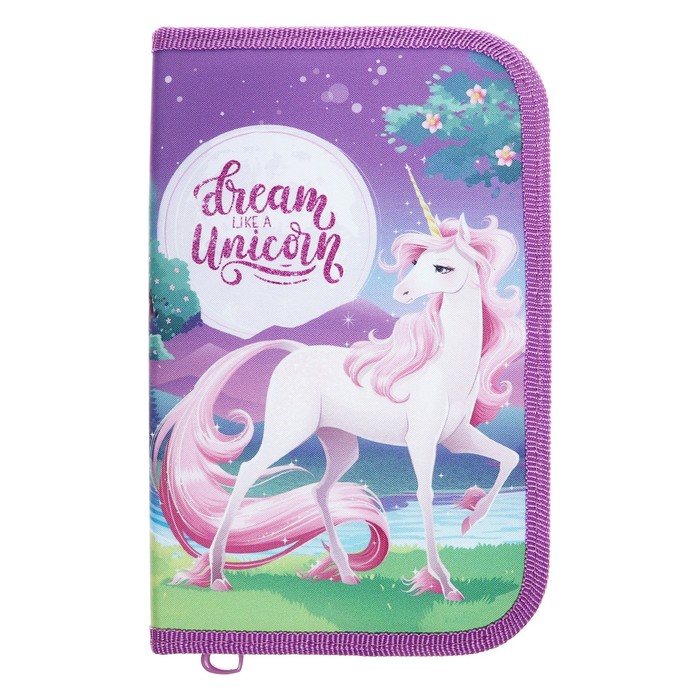 Пенал 1 секция, 135 х 212 х 26 мм, текстильный, ПКТ 04-20 МАХ, "Сказочный единорог" 70639 — Характеристики
