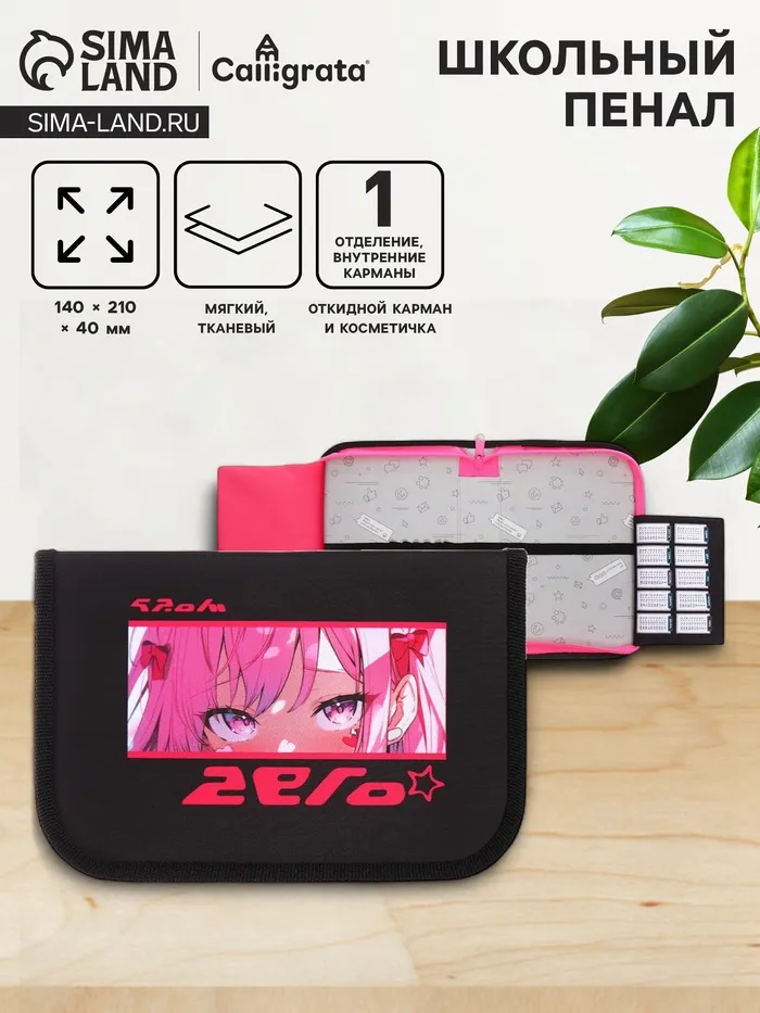 Пенал 1 секция 140×210×40 мм, откидной карман и косметичка, тканевый, «Глаза аниме» — Характеристики