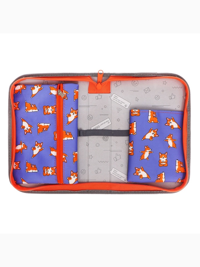 - Практичный дизайн: Яркие фиолетовый, сиреневый и оранжевый цвета привлекают внимание, а текстильный материал делает пенал легким и приятным на ощупь. Внутренние карманы и откидной карман обеспечивают дополнительное место для важных мелочей.