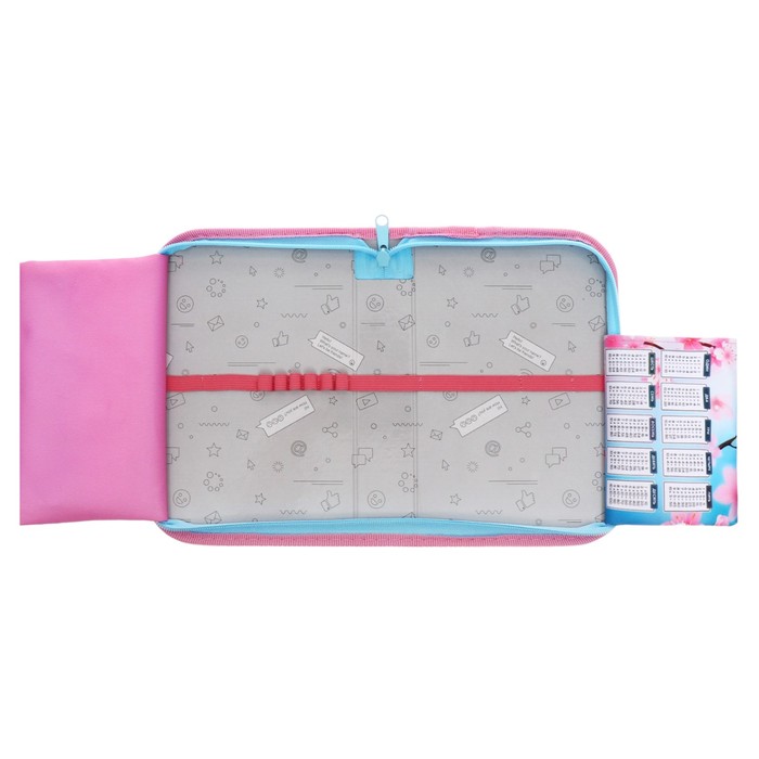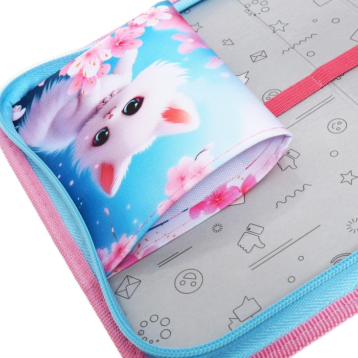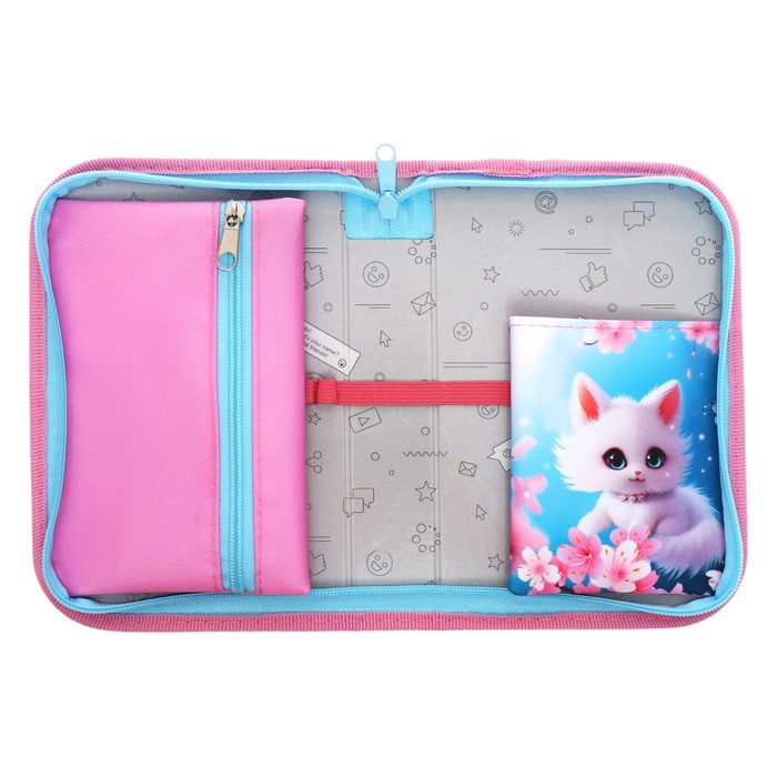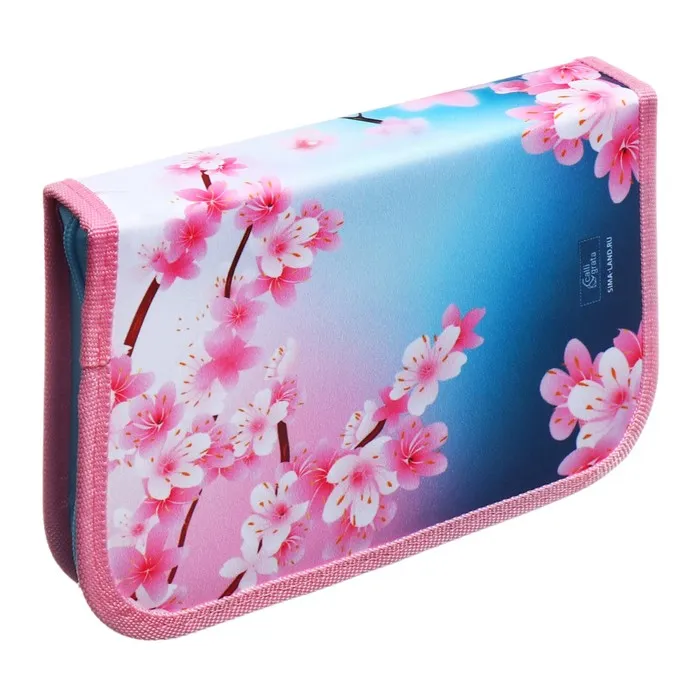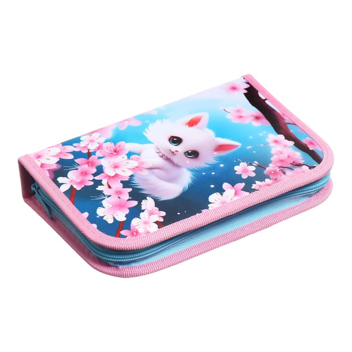Пенал 1 секция 140×210×40 мм, откидной карман, косметичка, тканевый, «Котик сакура» — Характеристики