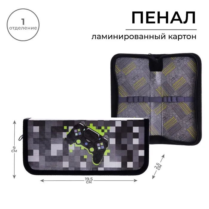 Пенал 1 секция, 90×195×25 мм, «Гейм пиксели», ламинированный картон — Характеристики