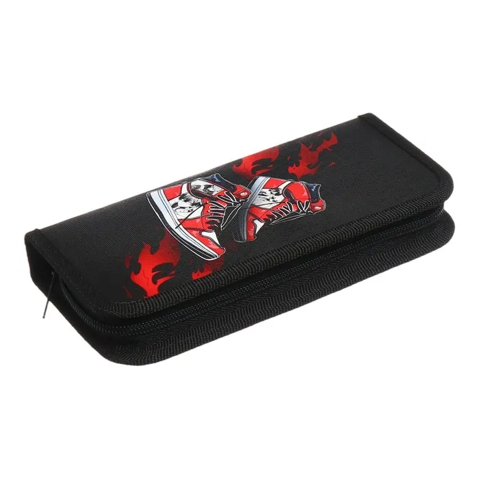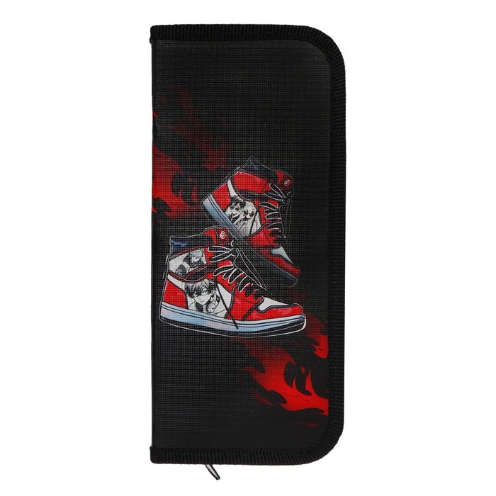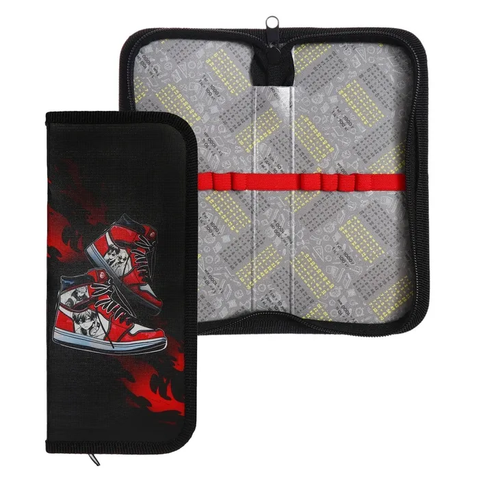 • Яркий дизайн с рисунком: Черно-красная палитра с изображением кедов в стиле аниме привлекает внимание и добавляет индивидуальности. Это не просто пенал, а элемент стиля для школьников и студентов, увлеченных аниме.