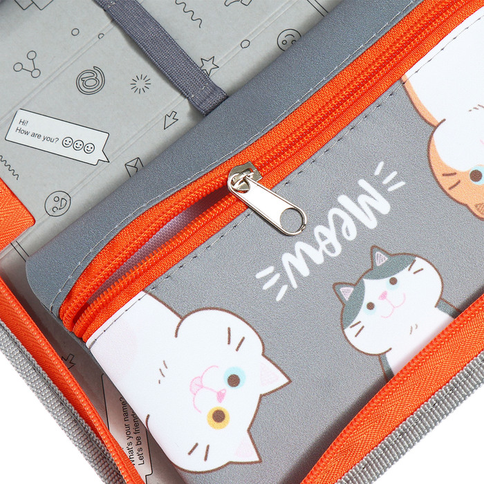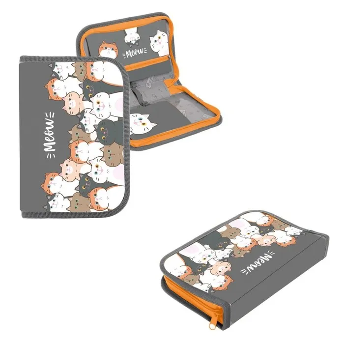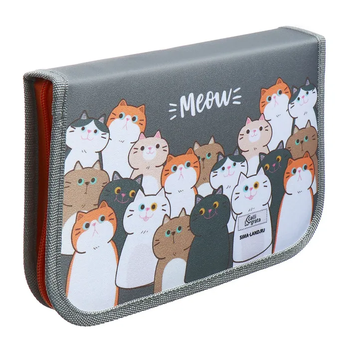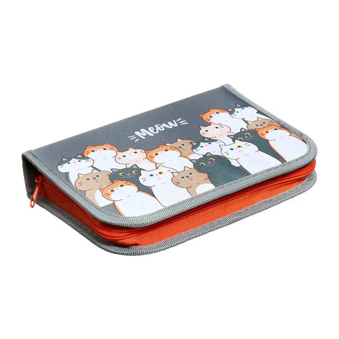 Пенал 1 секция «Коты» 140×210×40 мм, откидной карман и косметичка, тканевый — Характеристики