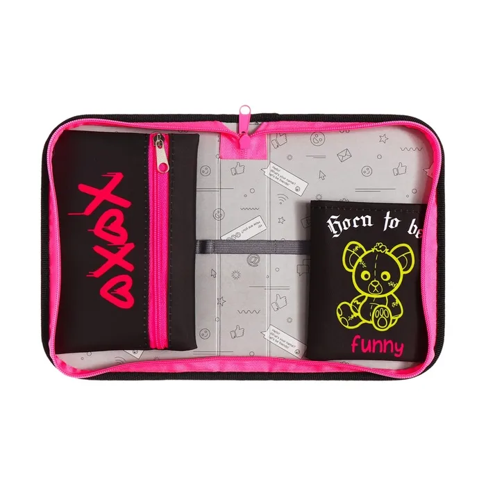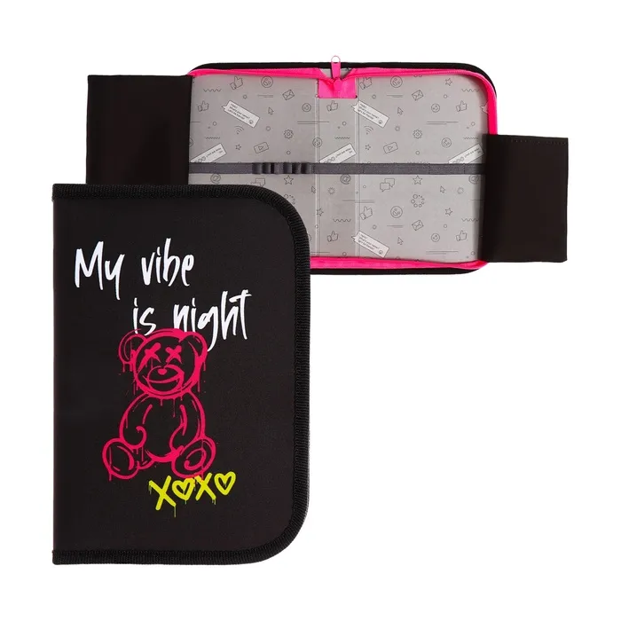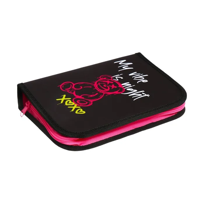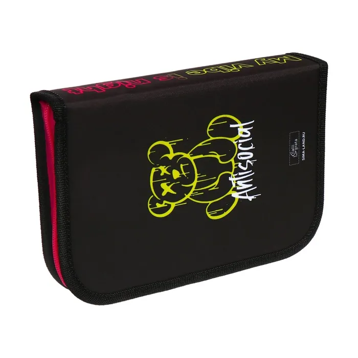 Пенал 1 секция «Медведь» 140×210×40 мм, откидной карман и косметичка, тканевый — Характеристики