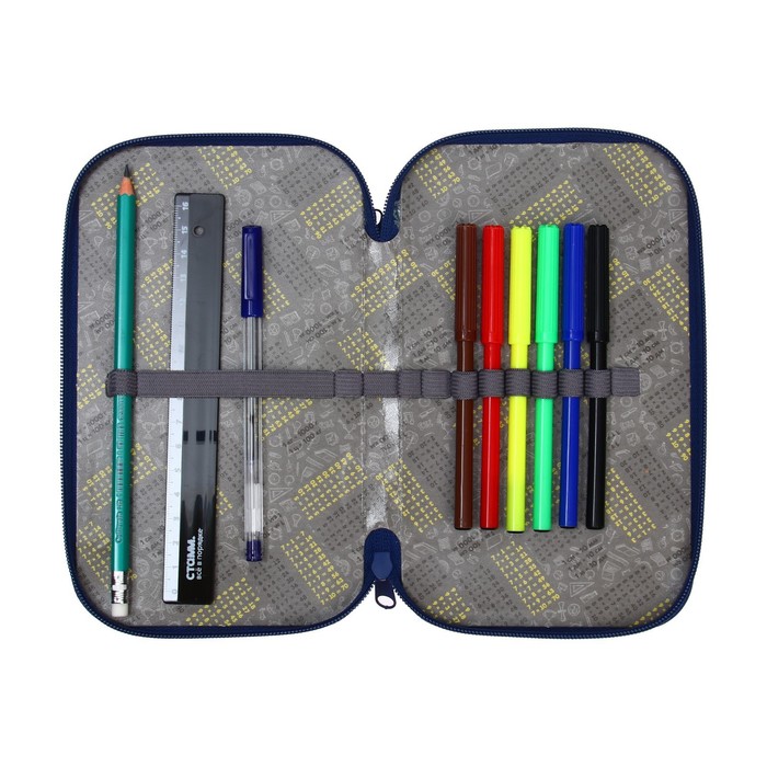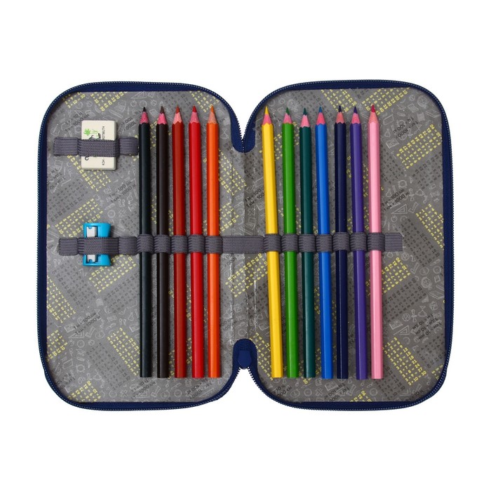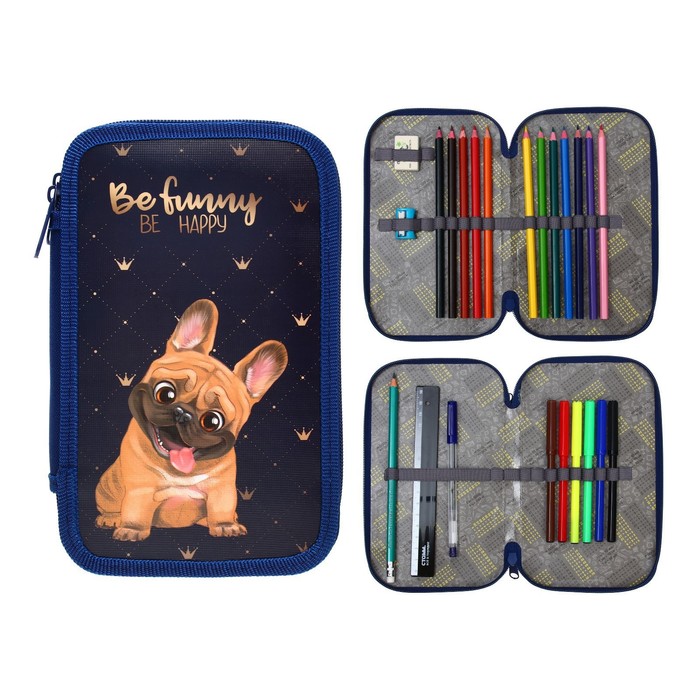 Пенал 2 секции, 125 х 205 мм, с наполнением 23 предмета, Calligrata "Бульдог" ламинированный картон, 30П26/2/set — Характеристики