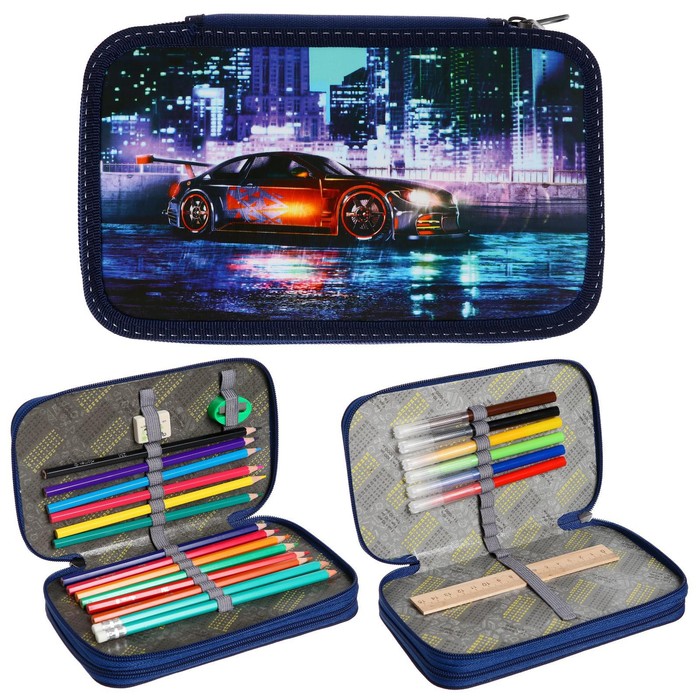 Пенал 2 секции, 125 х 205 мм, с наполнением 23 предмета, Calligrata "Драйв" ламинированный картон, 30П26/2/set — Характеристики