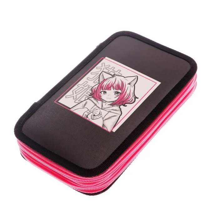 Пенал 2 секции, 125×205×40 мм «Аниме девушка», ламинированный картон, Calligrata