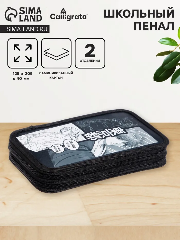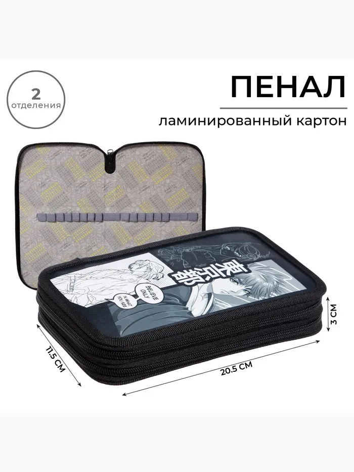 Пенал 2 секции, 125×205×40 мм, «Аниме принт», ламинированный картон — Характеристики