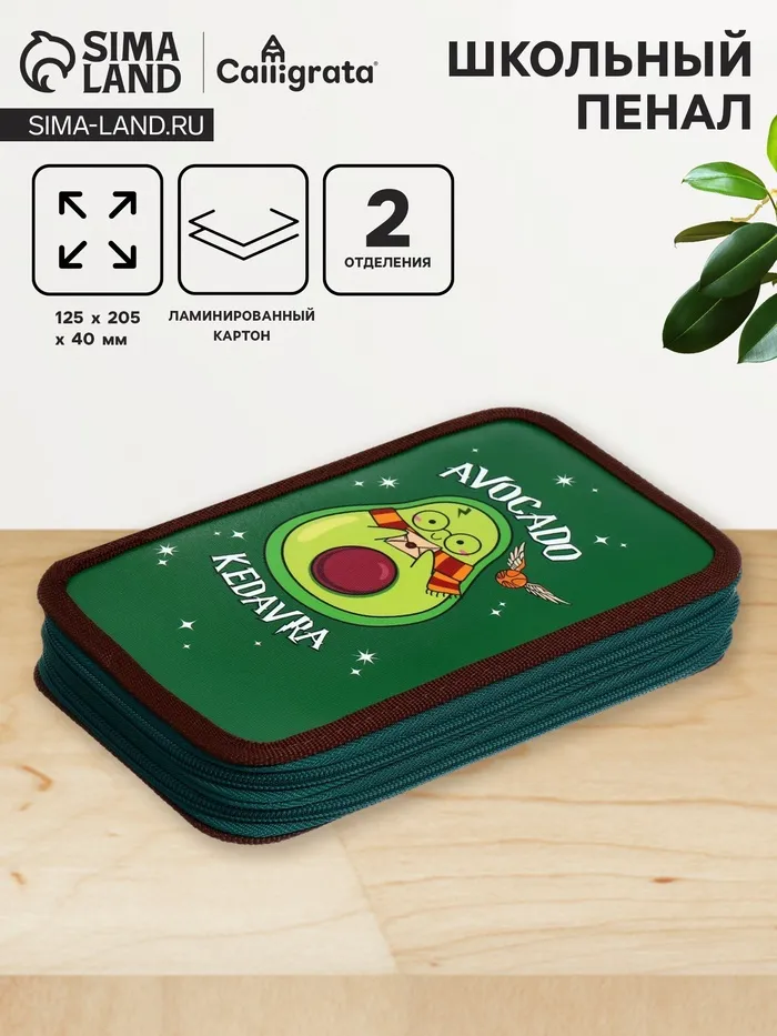 Пенал 2 секции, 125×205×40 мм, «Авокадо кедавра», ламинированный картон — Характеристики