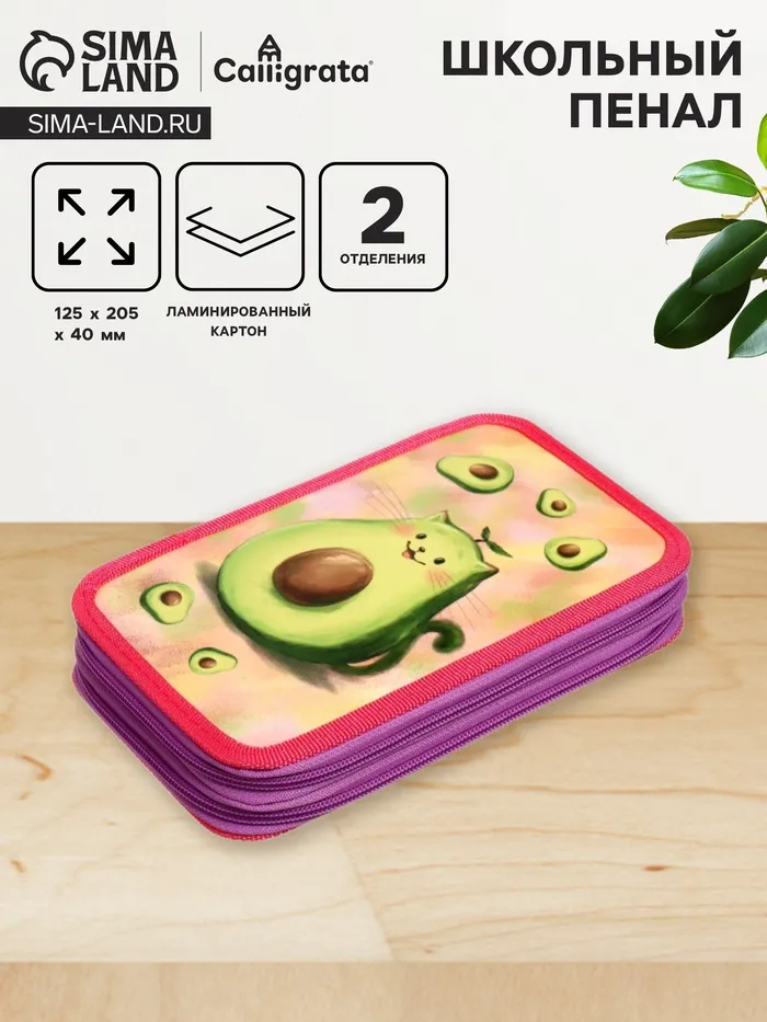 Пенал 2 секции, 125×205×40 мм, «Авокадо-кот», ламинированный картон — Характеристики