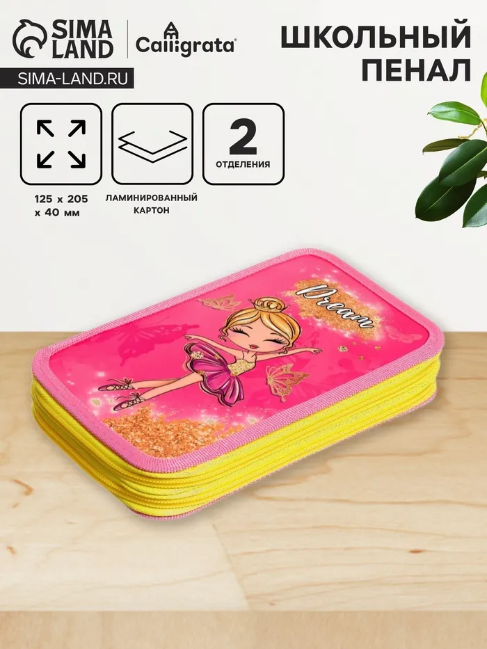 Пенал 2 секции, 125×205×40 мм, «Балерина», ламинированный картон — Характеристики