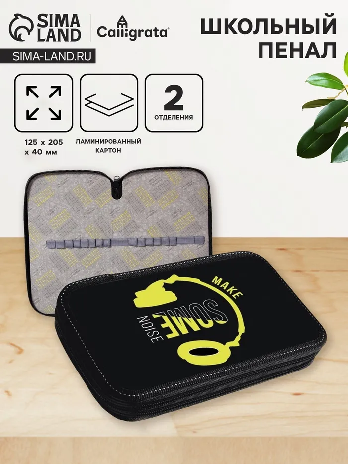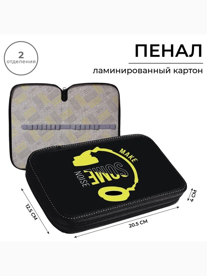 Пенал 2 секции, 125×205×40 мм, «Музыка», ламинированный картон — Характеристики