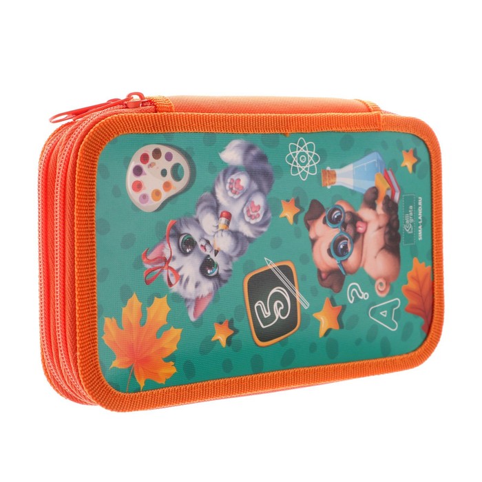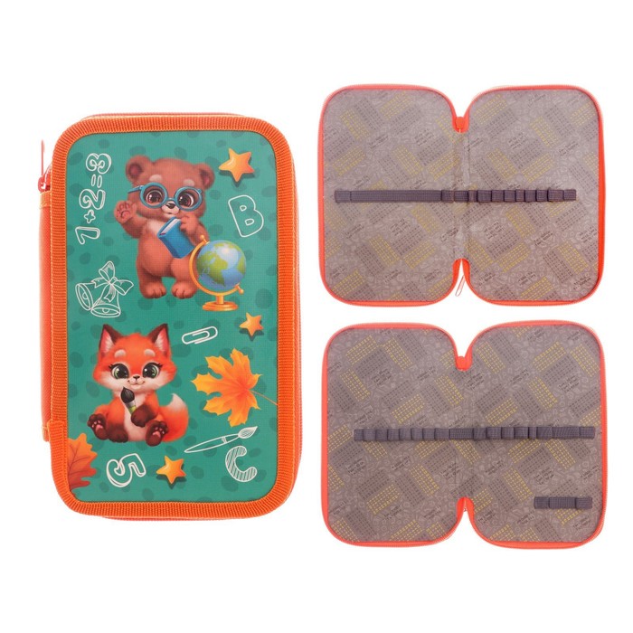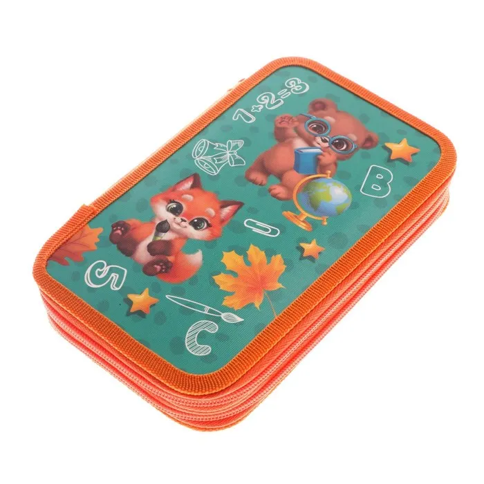 Пенал 2 секции, 125×205×40 мм, «Зверята», ламинированный картон
