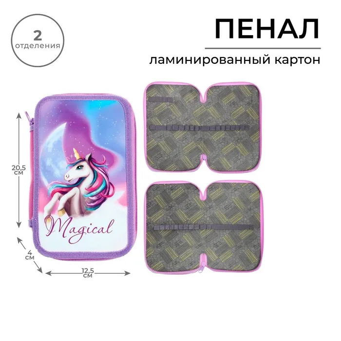 Пенал 2 секции «Единорог», 125×205×40 мм, ламинированный картон, Calligrata — Характеристики