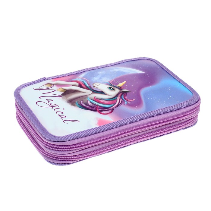 Пенал 2 секции «Единорог», 125×205×40 мм, ламинированный картон, Calligrata