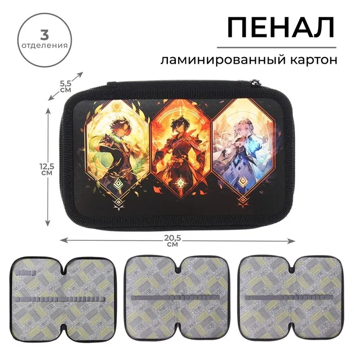 Пенал 3 секции, 125×205×55 мм, «Аниме game», ламинированный картон — Характеристики