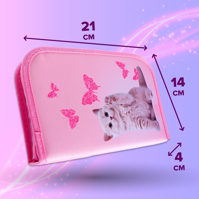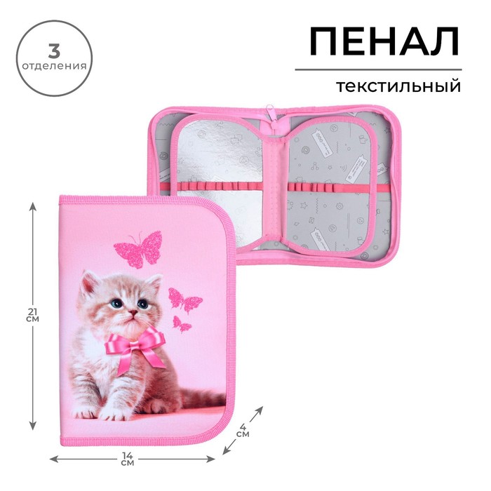 Пенал 3 секции «Котенок», вкладка внутри, 140×210×40 мм, тканевый, Calligrata — Характеристики