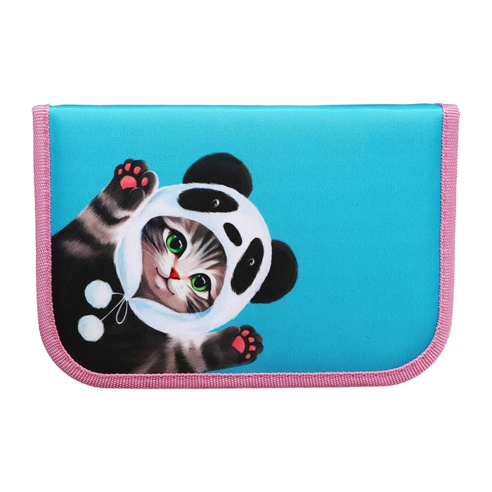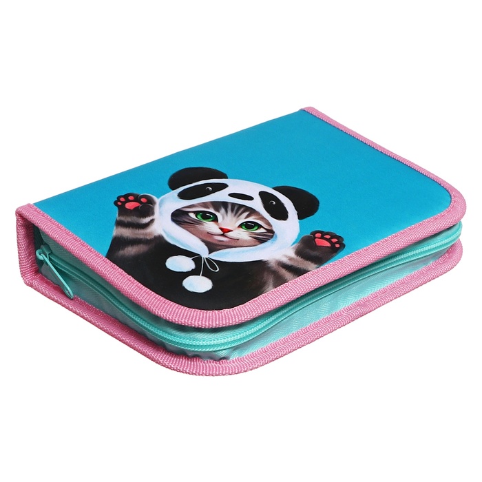 Пенал 3 секции, вкладка внутри, 140×210×40 мм, тканевый, «Кот панда» — Характеристики