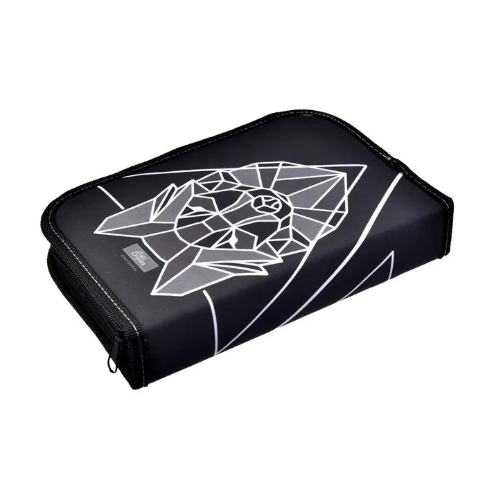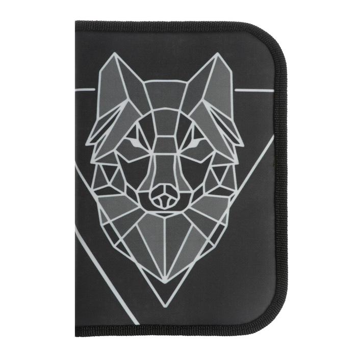 Пенал 3 секции «Волк графика», вкладка внутри, 140×210×40 мм, тканевый, Calligrata